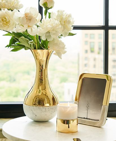 The Dual Marble Vase elevates the everyday. Its purposely narrow neck is designed to coax blooms into gracefully fanning out, while simultaneously making you look like a flower arranging expert. Made of polished silver and premium Italian Carrara Marble, a stone believed to encourage peace and calmness.