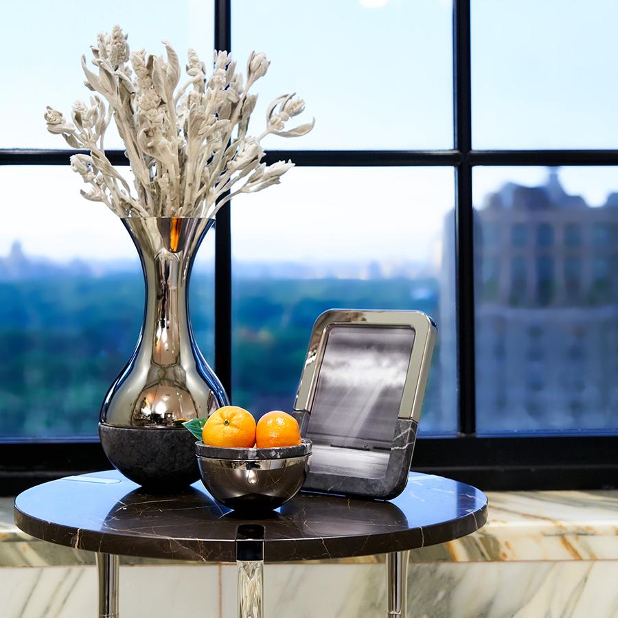 The Dual Marble Vase elevates the everyday. Its purposely narrow neck is designed to coax blooms into gracefully fanning out, while simultaneously making you look like a flower arranging expert. Made of polished silver and premium Italian Carrara Marble, a stone believed to encourage peace and calmness.