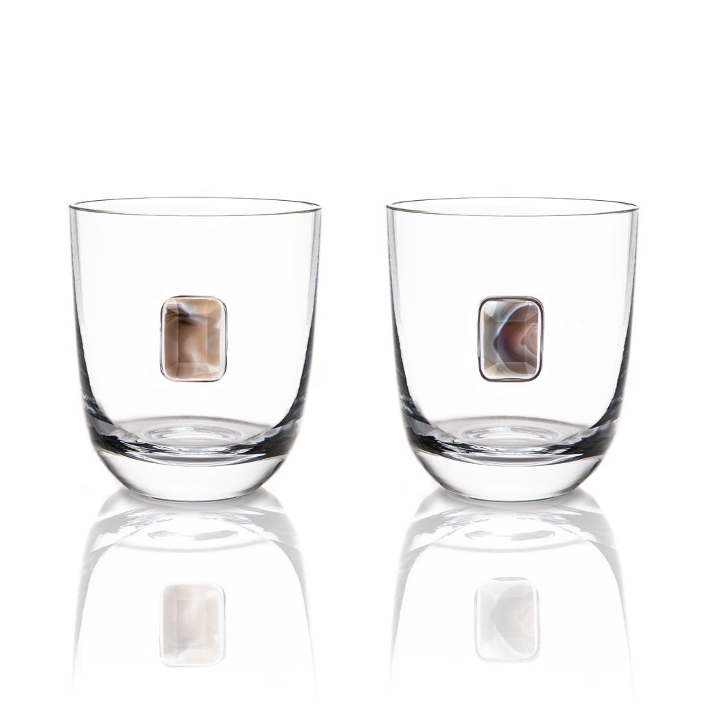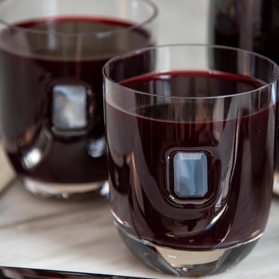 The Elevo Gemstone Double Old Fashioned Glasses are designed to elevate the experience of your favorite whiskey. Expertly crafted from lead-free European crystal, they are set with princess-cut, semi-precious gemstones, thought to promote clarity and strength. These pieces are jewels for your bar that make everything you imbibe taste better.