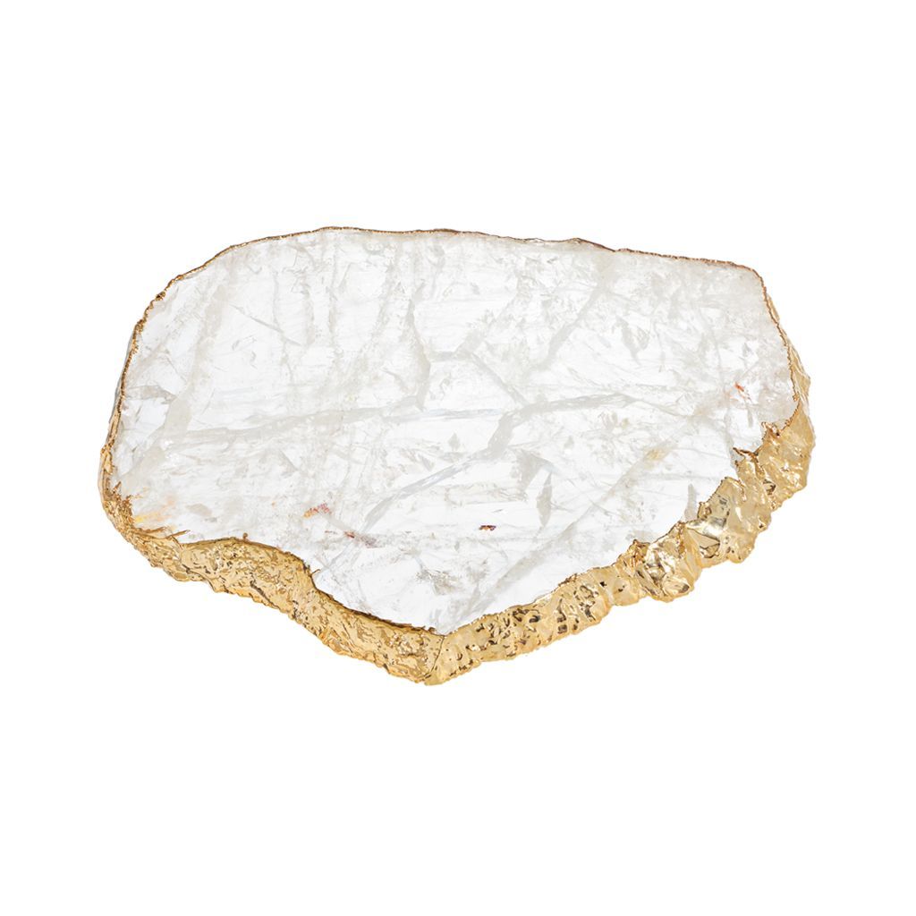 The Kiva Gemstone platters are all unique designs, crafted by mother nature, and imbued with secret powers including bringing clarity and calm to their owners. Each organic shape is framed in either 24k gold or pure silver, and designed to show off your culinary creations without competing with them.