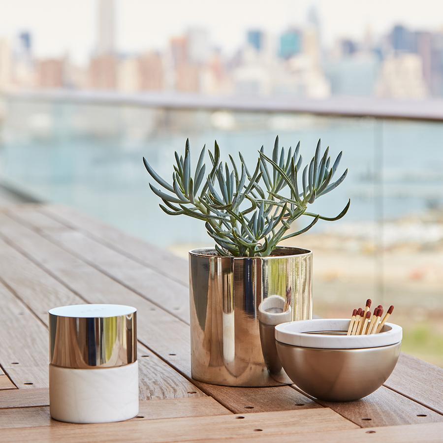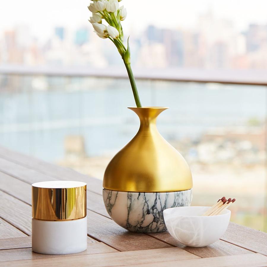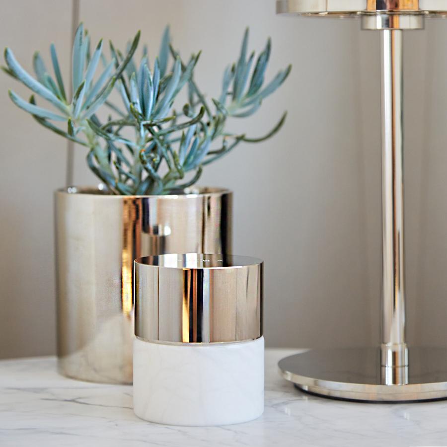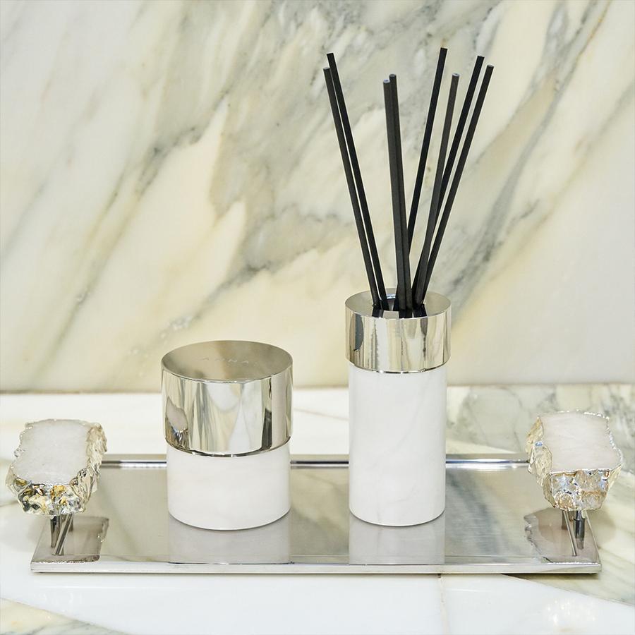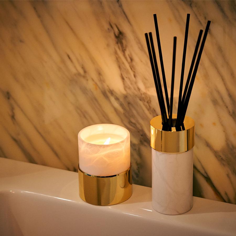 The La Cire candle is hand crafted in Spain from luxurious Alabaster, and has a gleaming metal lid which doubles as a stand. The organic fragrance it holds was developed especially for us by a master "nose" in Grasse, France, the capital of perfume. After burning, the lidded vessel can be used to store your personal treasures.
