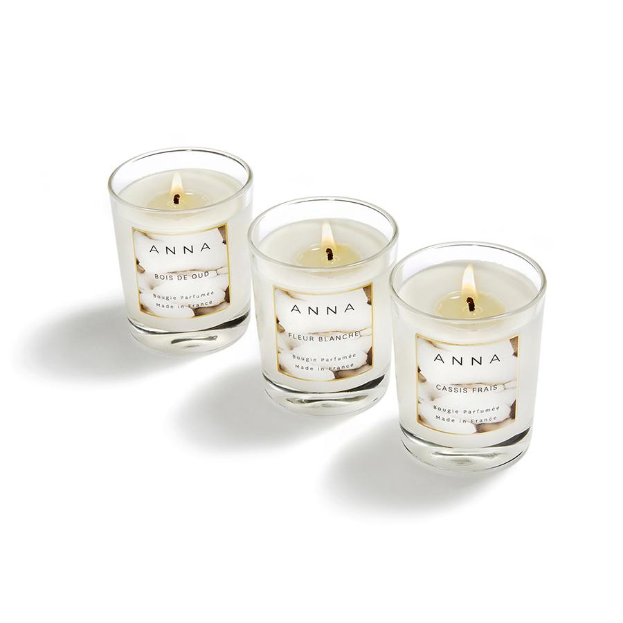 The La Cire votive set is all about organic, exclusive fragrance. A result of a collaboration with a master "nose" in Grasse, France, the capital of perfume, it includes three essential scents - Cassis Frais (Fruit), Fleur Blanche (White Flower), and Bois de Oud (Wood).