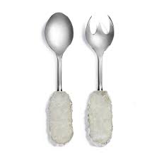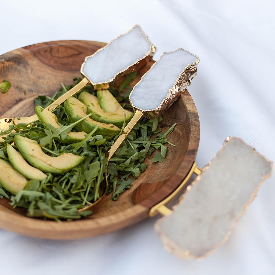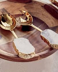 The Scossa Salad Servers add a touch of glamour to everything their tines touch – from pasta to salad to roasted vegetables. These weighty pieces are offered as a modernist set including one serving spoon and one serving fork. They are hand crafted in Brazil, using natural crystal, thought to bring clarity, and edged in 24k gold or pure silver.