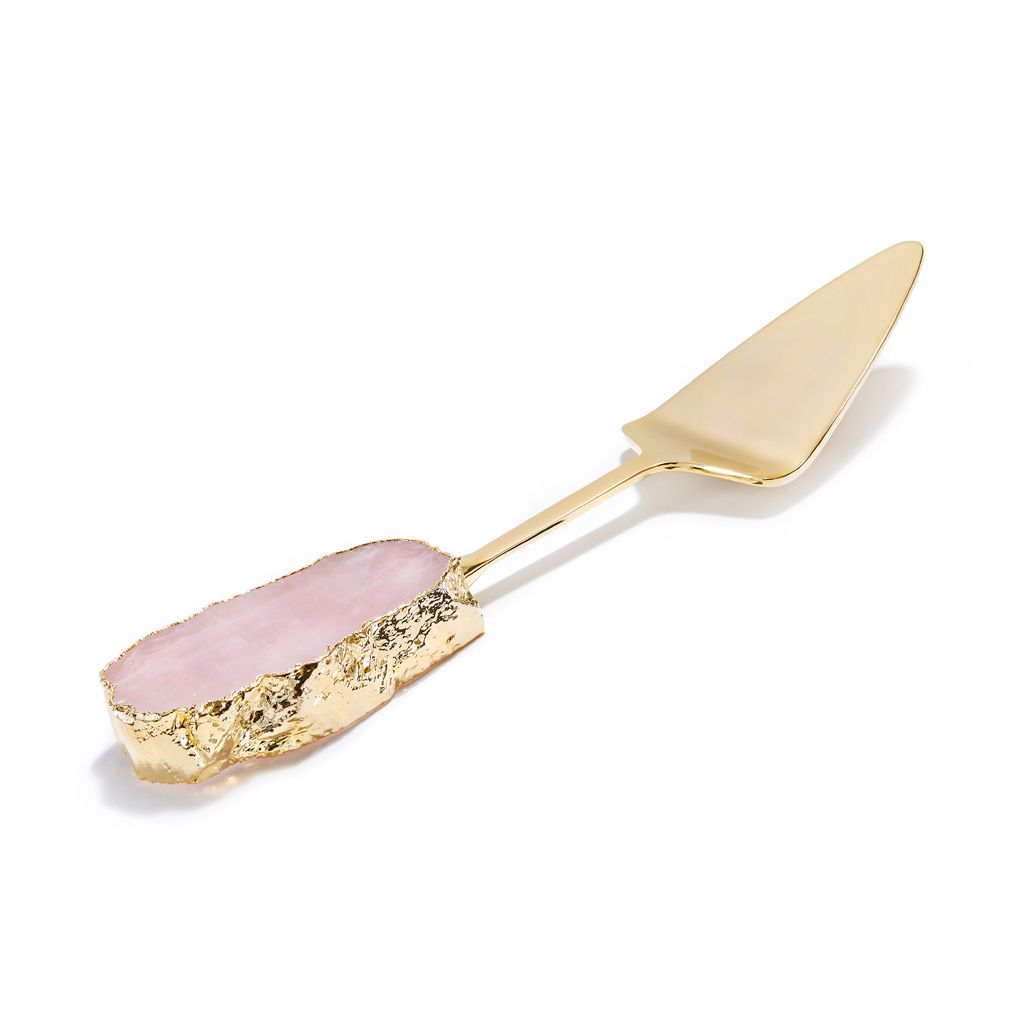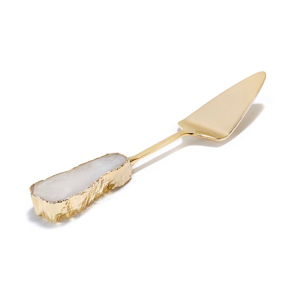 Our Torta Gemstone Cake Server might just steal the spotlight from whatever precious cargo it is carrying from the corresponding Torta Cake Plate. With a handle crafted from semi-precious crystal gems, and edged in 24k gold or pure Silver, this serveware staple will elevate the most humble pie to new heights.