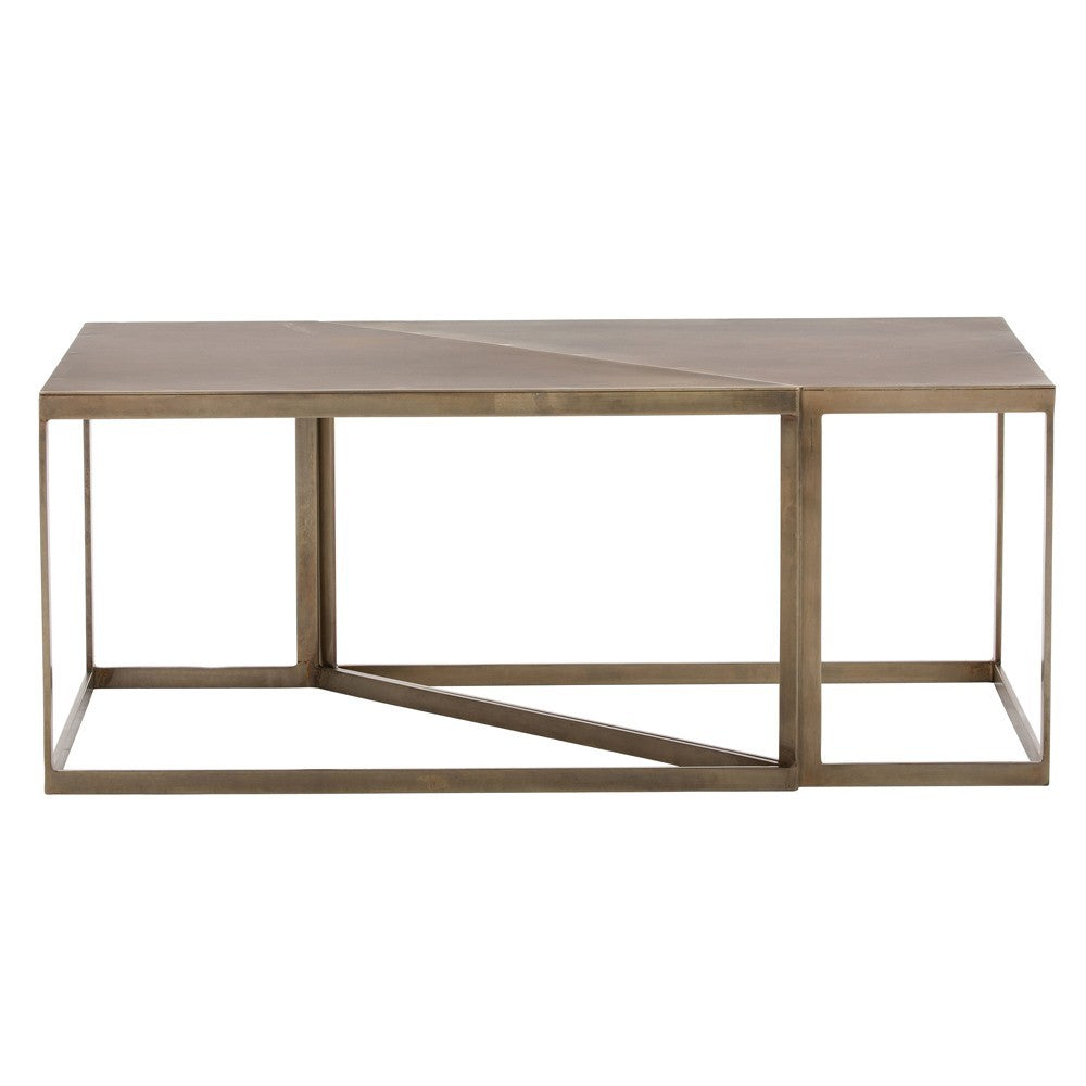 Entertainers will love the versatility of this antique brass design. The iron cocktail table can be separated to reveal two pieces that can be moved throughout a space or styled side-by-side.