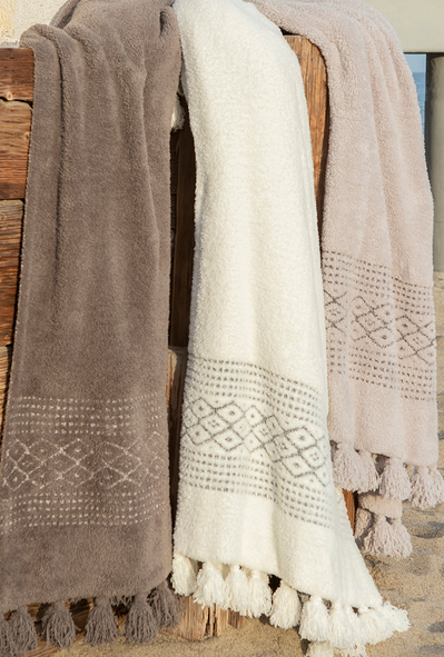 A brand favorite created from our new Luxe CozyChic fabrication, this exquisite throw is the epitome of cozy luxury. Detailed with a diamond pointelle pattern at each end and fashioned with tasseled fringe, it will be a gorgeous addition to any room.
