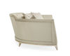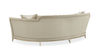 Equally at home in the city or country, this elegant crescent-shaped sofa bends all the rules to create the ultimate in sophisticated seating. Its shapely back and half-moon cushion are accented by a wood base in Soft Silver Leaf. Upholstered in a plush, sumptuous buff shade of velvet with a peek-through seam detail on the inside back and arms and throw pillows in an embroidered satin, this sofa's sweeping lines and tailored details create a look that is cosmopolitan chic.