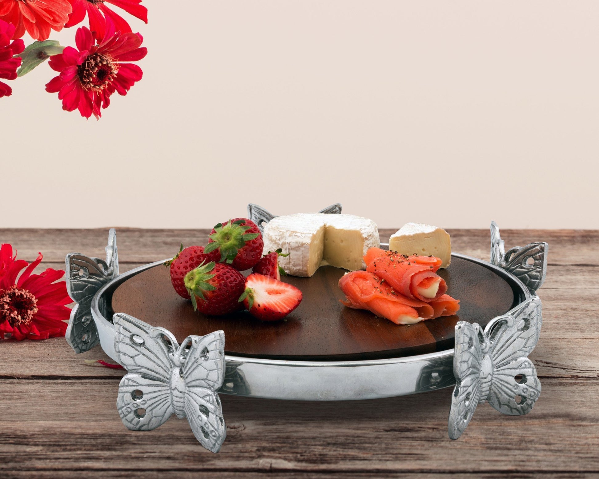 Draw attention to the snacks by putting them on Arthur Court's Butterfly Wood Cheese Pedestal.
