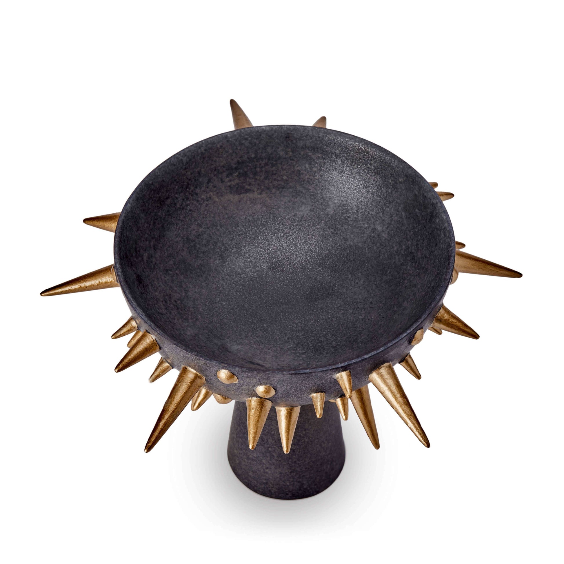 Evoking primitive artwork reimagined for a modern aesthetic, the Celestial collection combines earthenware with hand-painted, textural details to create a uniquely radiant design statement. The collection includes footed bowls, mirrors, and hanging lamps with antiqued brass hardware.