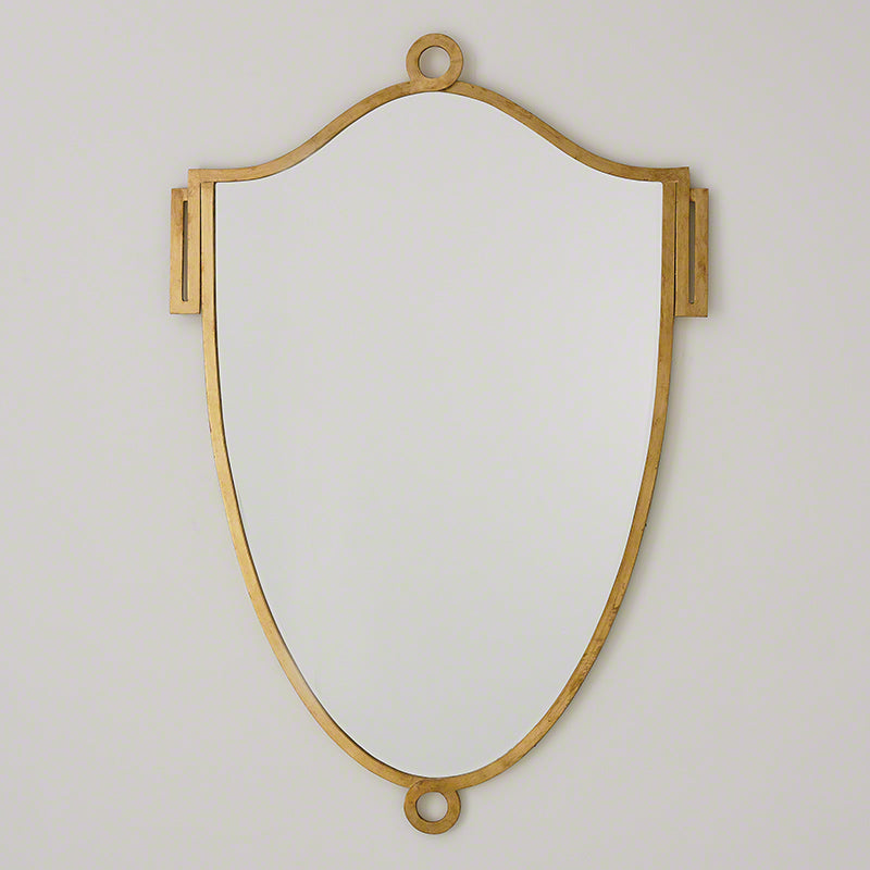 A Roger Thomas modern interpretation of the traditional Chinese shield mirror. It is made of iron with a gold leaf finish. Available in Large and Small sizes.