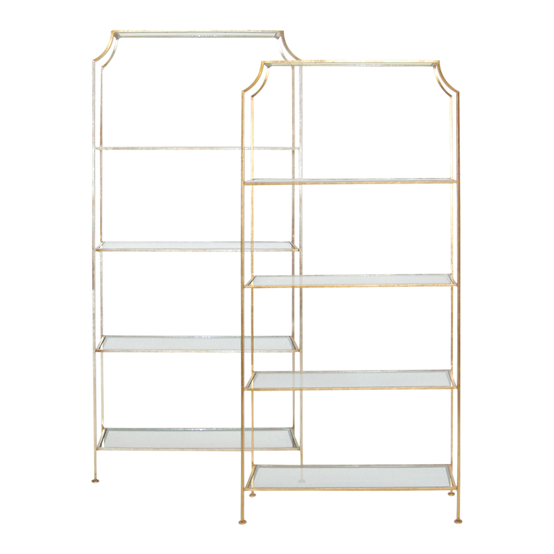 SILVER LEAF ETAGERE WITH CLEAR GLASS SHELVES
