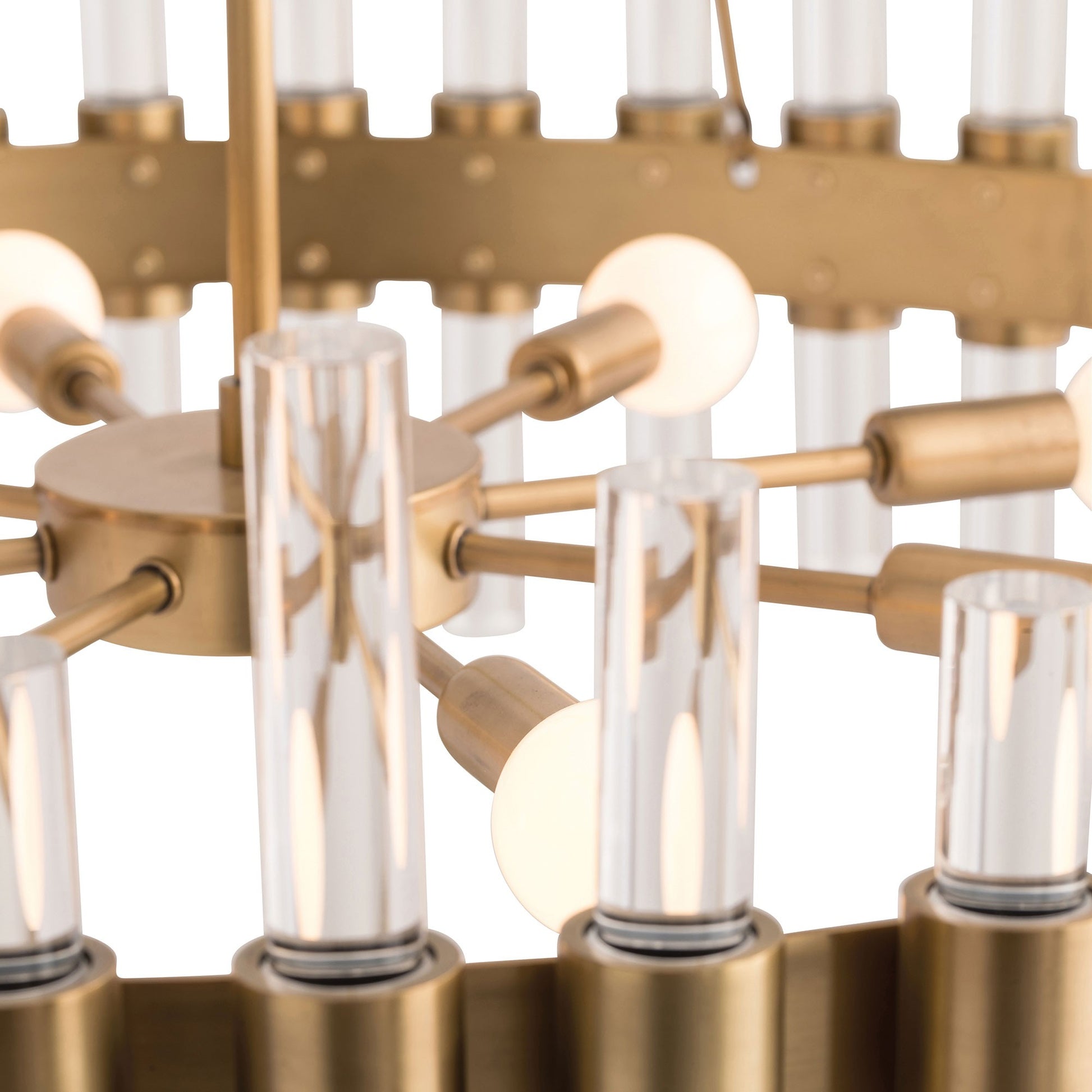 Antique brass and clear acrylic are the perfect pair on this eight-light chandelier. Approved for use in covered outdoor areas. Similar style available as a sconce (49057). Finish may vary. Additional pipe available (PIPE-101).