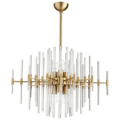 Enjoy the custom look of a dimensional light fixture. With linear styling, its glass rods in gradient sizes deliver an eye-pleasing geometric appeal. This six-light aged brass and glass pendant transforms a living or dining space.