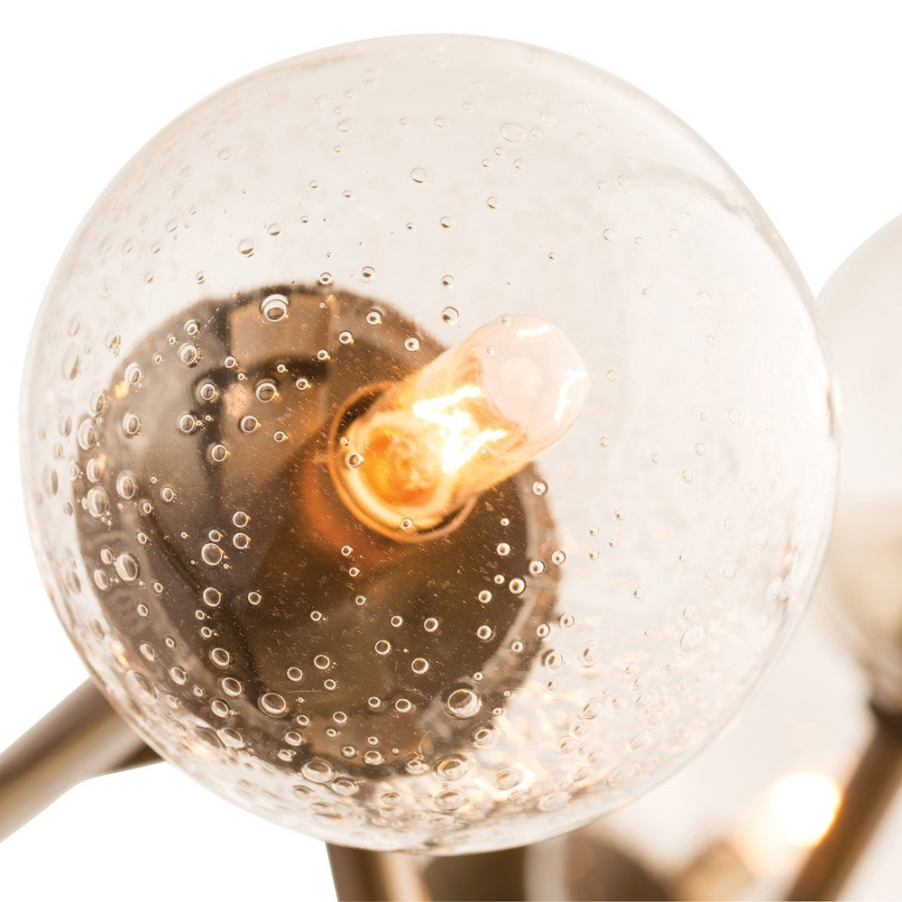 The Dallas Chandelier (89981), one of our most popular designs, is now available in a vintage brass finish. This 18-light mid-century inspired design features seedy glass spheres and 12 out of 18 arms are adjustable, making this the perfect DIY project for your more discerning clients. Shown with small clear tubular bulbs. Additional pipe available PIPE-110. Approved for use in covered outdoor areas.