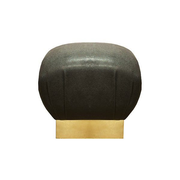 FAUX SHAGREEN BLACK POUF WITH GOLD LEAF BASE