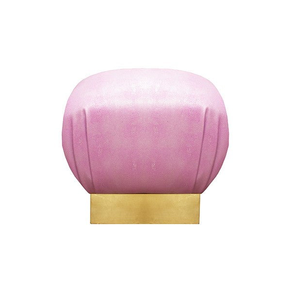 FAUX SHAGREEN PINK POUF WITH GOLD LEAF BASE