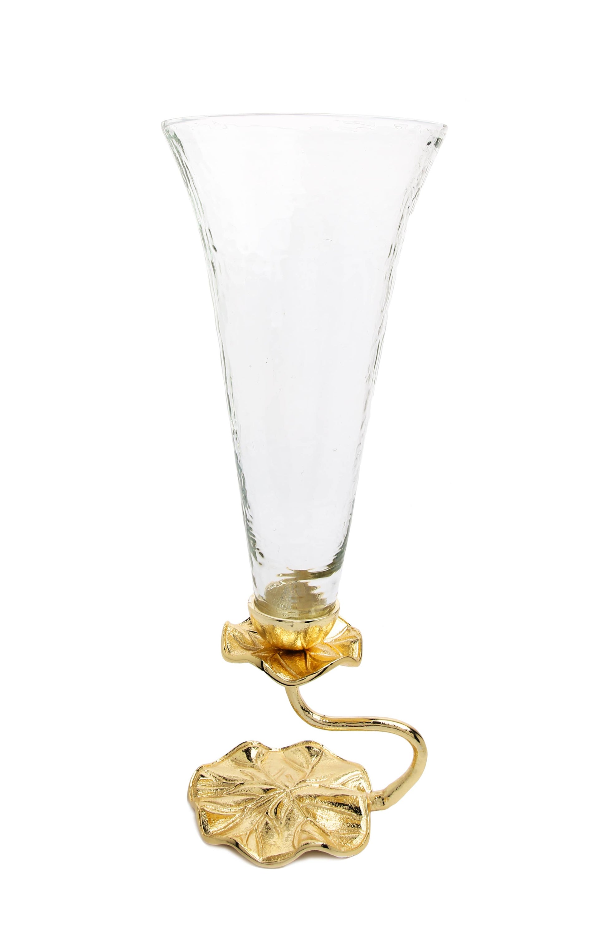 Manufactured with the finest quality materials, this exquisite vase is indicative of rich dining and fine decorating talent. It is encased in a in a stainless steel base that has lotus flowers growing out from the sides. The glass is thick and durable, making it safe for a big bunch of flowers with added water.