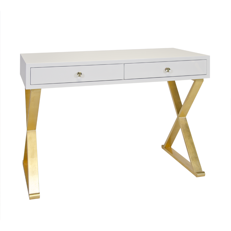 WHITE LACQUER DESK WITH GOLD LEAFED BASE