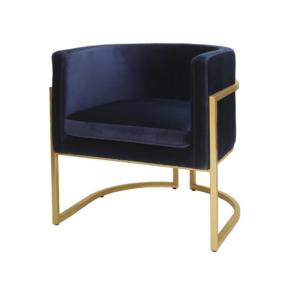 GOLD LEAF FRAME BARREL ARM CHAIR IN NAVY VELVET