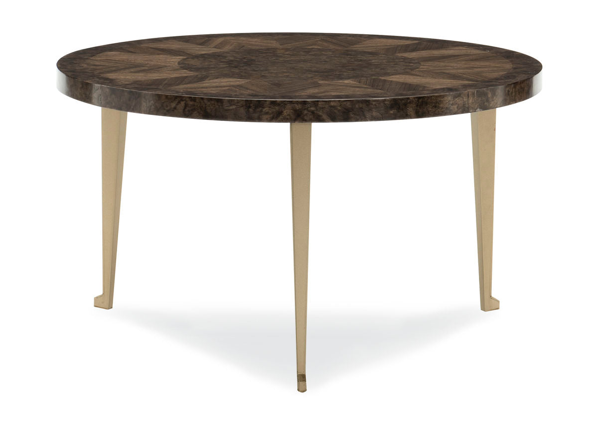 A signature addition to any room, this classic side table offers warm, welcoming style in a timeless silhouette. Its exquisite top is crafted from pattern-matched quartered Paldao and European Oak Burl finished in a rich Galway. Adding depth and drama in a small footprint, its stunning look is completed with legs finished in Golden Shimmer. This charming piece is destined to be a design essential.