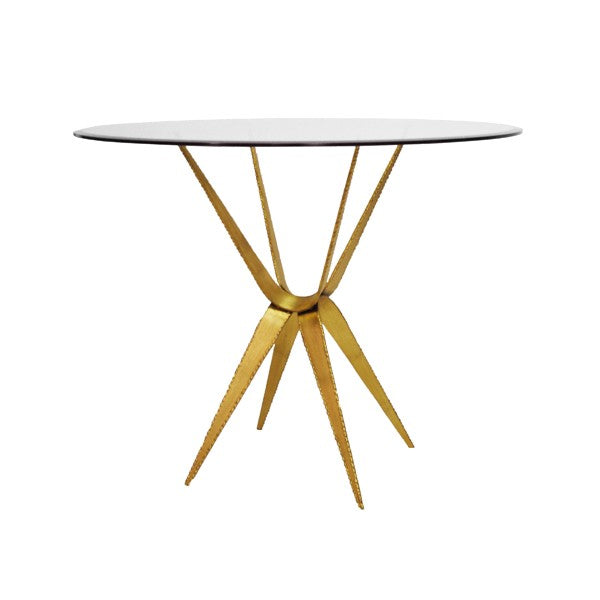 SCULPTURAL FOYER TABLE BASE IN GOLD LEAF WITH 36" DIA GLASS TOP