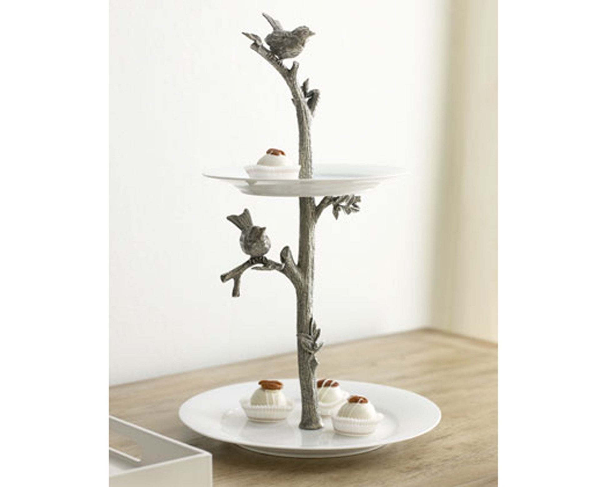 Vagabond House's double tiered stoneware and pewter dessert stand is a combination of lustrous stoneware and noble pewter so sweet it will make your heart sing.